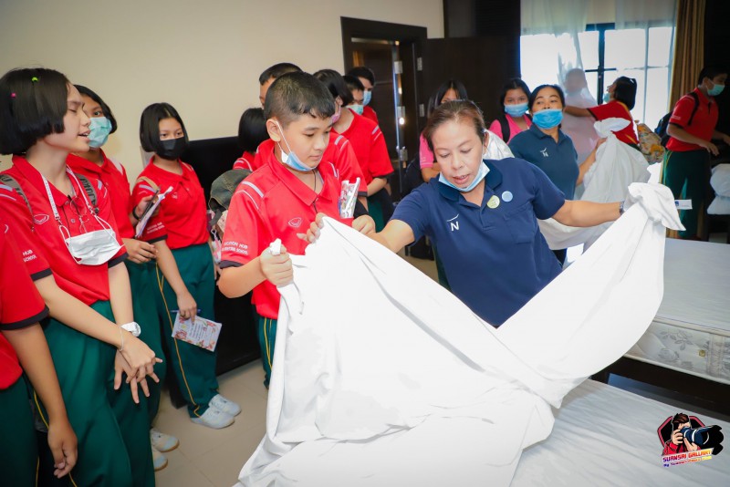 12 กันยายน 2563 กลุ่มสาระการเรียนรู้ภาษาต่างประเทศ จัดโครงการส่งเสริมประสิทธิภาพการจัดการเรียนการสอนห้องเรียนพิเศษโครงการพัฒนาประเทศไทยเป็นศูนย์กลางการศึกษาในภูมิภาค โปรแกรมวิทยาศาสตร์-คณิตศาสตร์สองภาษา (Science-Mathematics Bilingual Program: SMBP) กิจกรรม One Day Trip: Table Manners at Novotel Chumphon Beach Resort & Golf วันที่ 12 กันยายน 2563 ณ โรงแรมโนโวเทล ชุมพร บีชรีสอร์ทแอนด์กอล์ฟ อำเภอเมือง จังหวัดชุมพร โดยมีวัตถุประสงค์เพื่อพัฒนาอัจฉริยภาพด้านภาษาอังกฤษ ศึกษาเรียนรู้และฝึกปฏิบัติเกี่ยวกับมารยาทบนโต๊ะอาหาร (Table Manners) แบบชาวตะวันตก การจัดการโรงแรม ศึกษาเรียนรู้และฝึกปฏิบัติการทำผ้าบาติก ณ กลุ่มบาติกผาแดง อำเภอเมือง จังหวัดชุมพร โดยมีนักเรียนเข้าร่วมโครงการจำนวน 74 คน ครู 10 คน รวม 84 คน