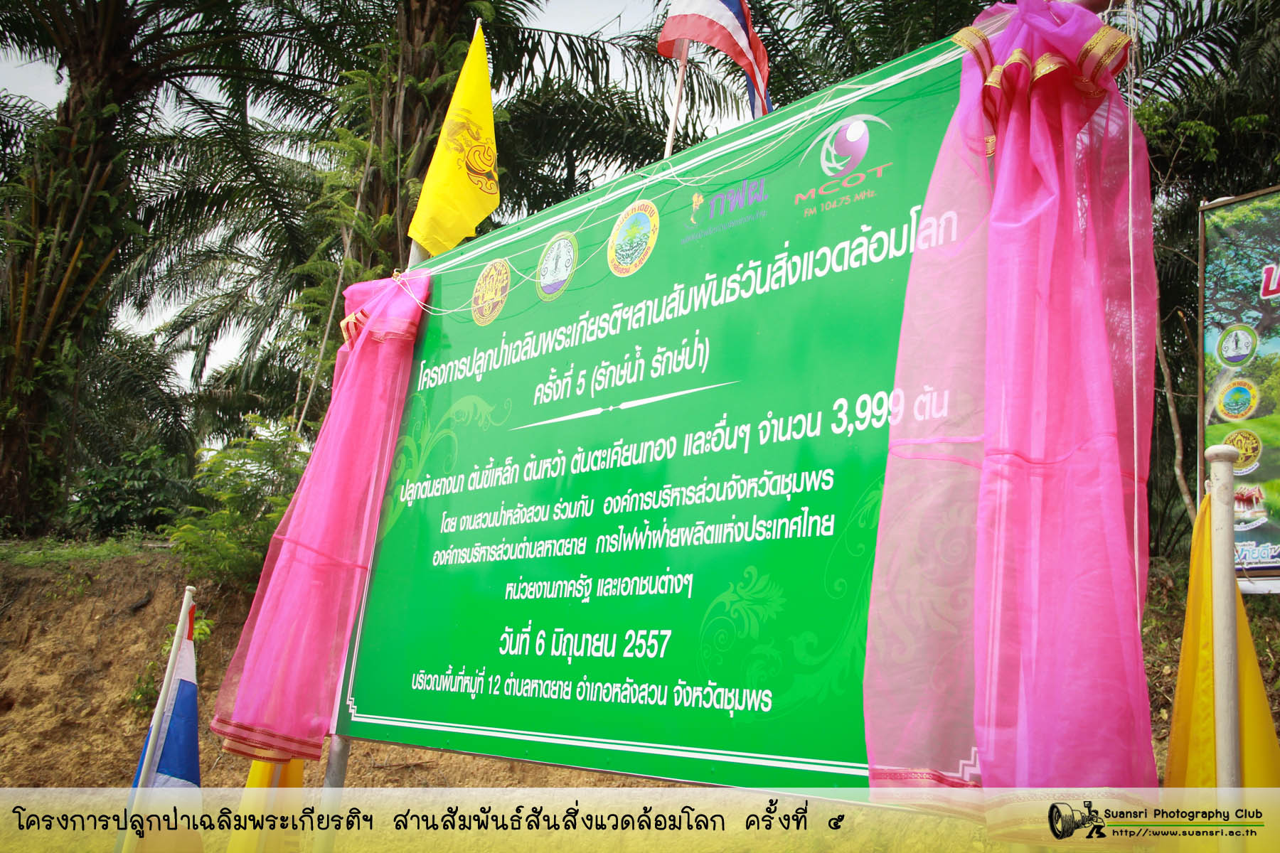 เมื่อวันที่ 5 - 7 พฤษภาคม ที่ผ่านมา งานสวนป่าหลังสวน องค์การสวนป่าร่วมกับสถานีวิทยุอ.ส.ม.ท.หลังสวน FM. 104.75 MHz ได้จัดโครงการปลูกป่าเฉลิมพระเกียรติฯ สานสัมพันธ์วันสิ่งแวดล้อมโลก " รักษ์ป่า รักษ์น้ำ " ครั้งที่ 5 ขึ้น ณ สำนักสงฆ์พรรณราย ม.12 ต.หาดยาย อ.หลังสวน จ.ชุมพร โดยมีคณะครู นักเรียน และชาวบ้าน กว่า 400 คนเข้าร่วมกิจกรรมในครั้งนี้ โดยจัดให้มีกิจกรรมให้ความรู้เกี่ยวป่า การอนุรักษ์ป่า และได้ให้นักเรียนและหัวหน้าส่วนราชการต่างๆได้ร่วมกันปลูกป่าเฉลิมพระเกียรติฯ และทำฝายชะลอน้ำ ร่วมกับศิลปินนักร้องจากค่ายอาร์สยาม อาทิ ต้นข้าว อาร์สยาม ณัฐฐ์ อาร์สยาม นิว มาร์วิน อาร์สยาม และอ๊อฟ ดอกฟ้าอาร์สยาม ในภาคกลางคืนมีการแสดงรอบกองไฟของนักเรียน และ การแสดงของศิลปินอาร์สยาม