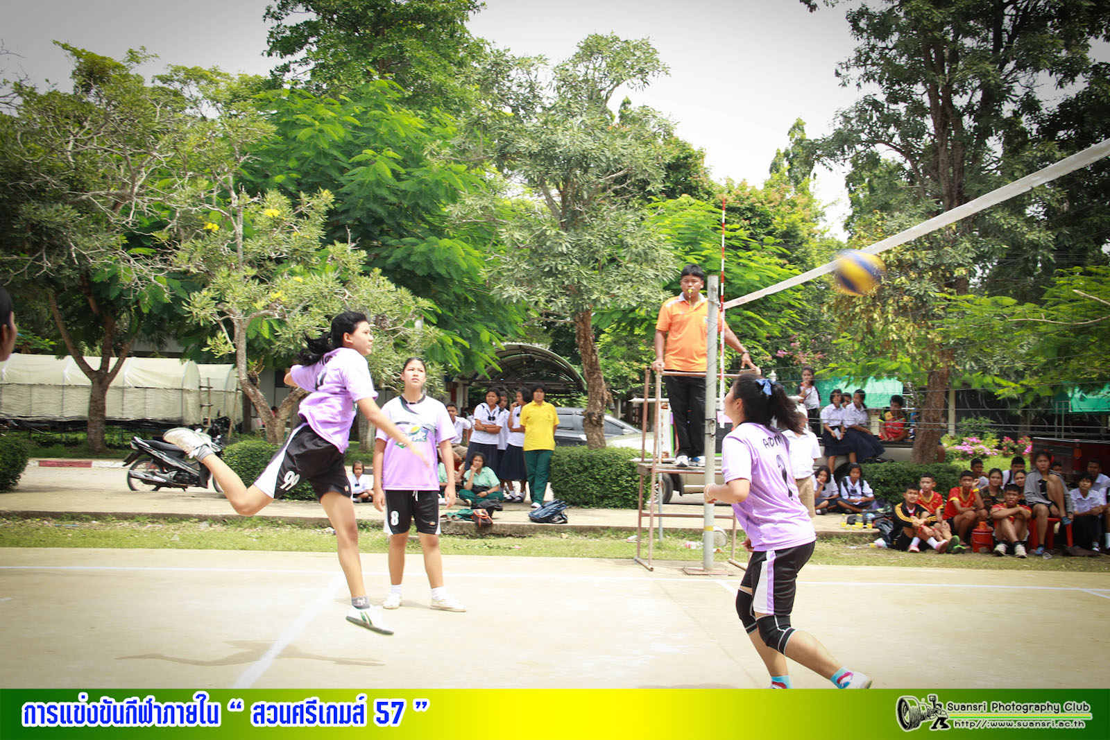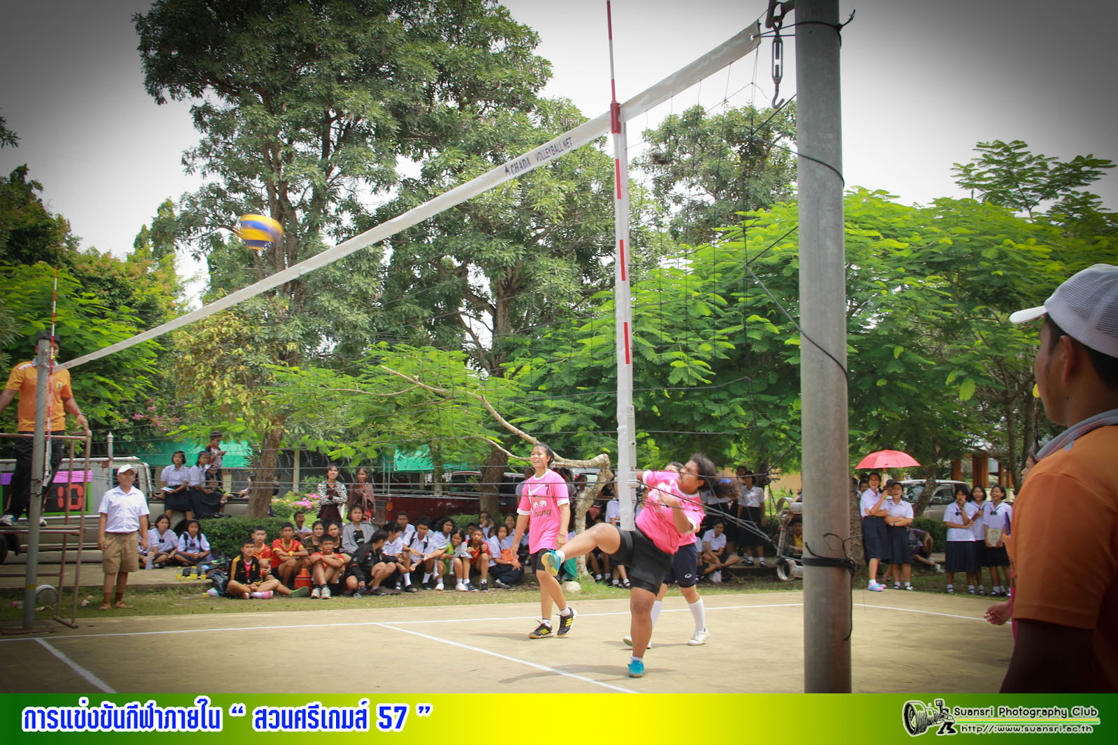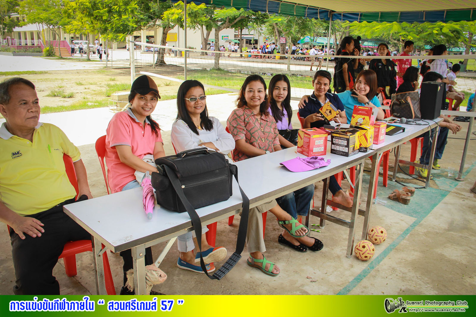 โดยมีนายวินัย กรานมูล ผู้อำนวยการโรงเรียนสวนศรีวิทยา เป็นผู้กล่าวรายงาน การจัดกิจกรรมกีฬาภายในของโรงเรียนสวนศรีวิทยา “สวนศรีเกมส์ 57” กำหนดจัดระหว่างวันที่ 22-25 กรกฎาคม 2557 มีนักเรียนเข้าร่วมกิจกรรม จำนวน 2,600 คน แบ่งออกเป็น 4 คณะสี ได้แก่ คณะสีม่วง จำนวน 659 คน, คณะสีแดง จำนวน 658 คน, คณะสีฟ้า จำนวน 634 คน และ คณะสีชมพู จำนวน 649 คน จัดให้มีการแข่งขันกีฬา 7 ประเภท คือ ฟุตบอล,บาสเก็ตบอล, วอลเลย์บอล, เปตอง, เซปัคตะกร้อ, เทเบิลเทนนิส และกรีฑา