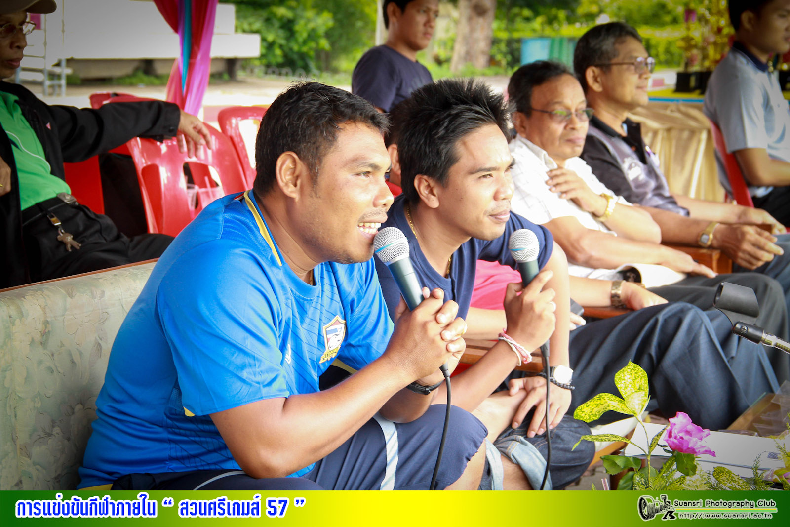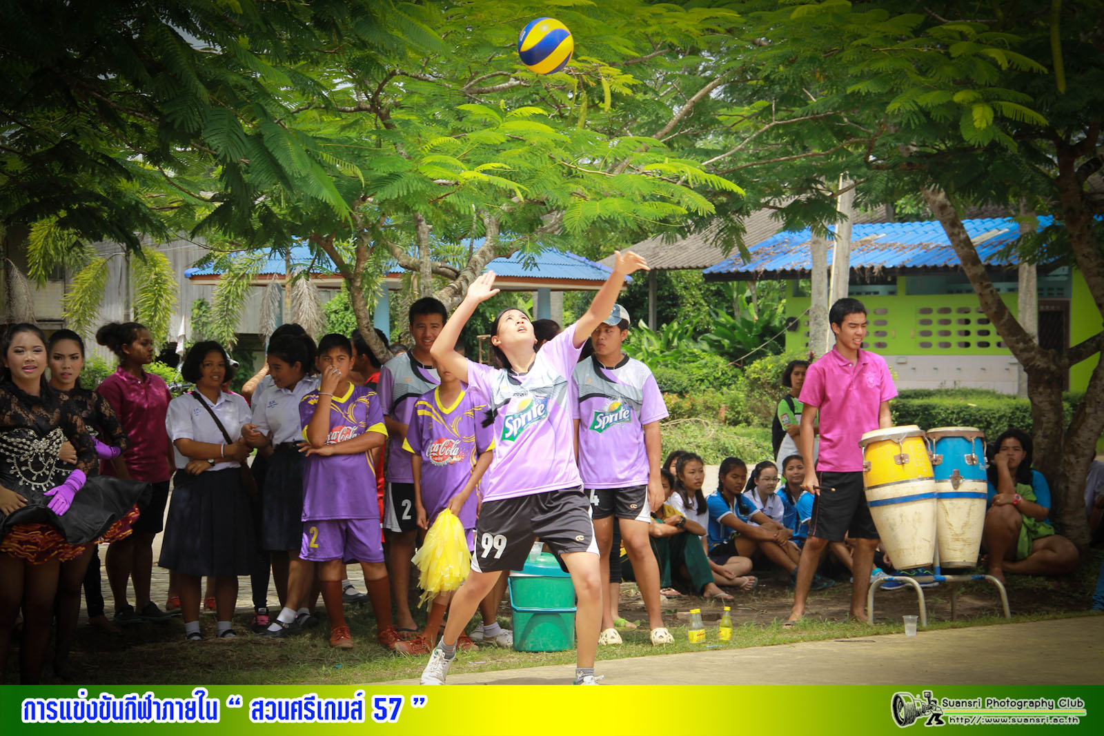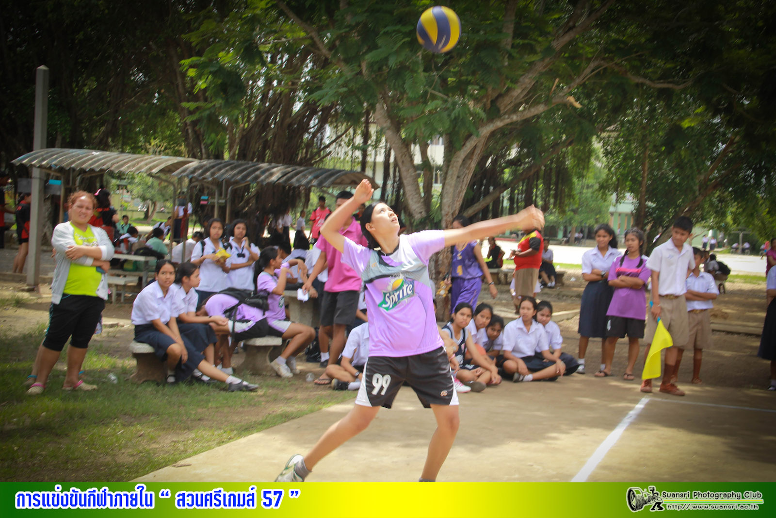 โดยมีนายวินัย กรานมูล ผู้อำนวยการโรงเรียนสวนศรีวิทยา เป็นผู้กล่าวรายงาน การจัดกิจกรรมกีฬาภายในของโรงเรียนสวนศรีวิทยา “สวนศรีเกมส์ 57” กำหนดจัดระหว่างวันที่ 22-25 กรกฎาคม 2557 มีนักเรียนเข้าร่วมกิจกรรม จำนวน 2,600 คน แบ่งออกเป็น 4 คณะสี ได้แก่ คณะสีม่วง จำนวน 659 คน, คณะสีแดง จำนวน 658 คน, คณะสีฟ้า จำนวน 634 คน และ คณะสีชมพู จำนวน 649 คน จัดให้มีการแข่งขันกีฬา 7 ประเภท คือ ฟุตบอล,บาสเก็ตบอล, วอลเลย์บอล, เปตอง, เซปัคตะกร้อ, เทเบิลเทนนิส และกรีฑา