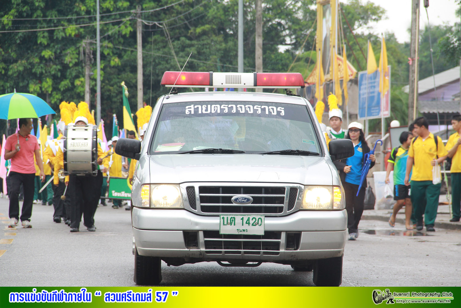 โดยมีนายวินัย กรานมูล ผู้อำนวยการโรงเรียนสวนศรีวิทยา เป็นผู้กล่าวรายงาน การจัดกิจกรรมกีฬาภายในของโรงเรียนสวนศรีวิทยา “สวนศรีเกมส์ 57” กำหนดจัดระหว่างวันที่ 22-25 กรกฎาคม 2557 มีนักเรียนเข้าร่วมกิจกรรม จำนวน 2,600 คน แบ่งออกเป็น 4 คณะสี ได้แก่ คณะสีม่วง จำนวน 659 คน, คณะสีแดง จำนวน 658 คน, คณะสีฟ้า จำนวน 634 คน และ คณะสีชมพู จำนวน 649 คน จัดให้มีการแข่งขันกีฬา 7 ประเภท คือ ฟุตบอล,บาสเก็ตบอล, วอลเลย์บอล, เปตอง, เซปัคตะกร้อ, เทเบิลเทนนิส และกรีฑา