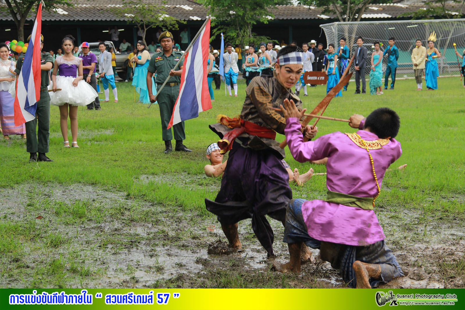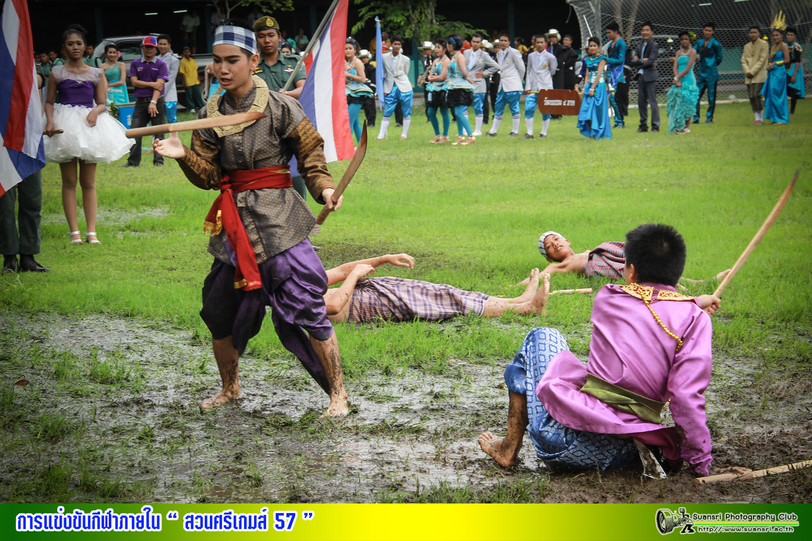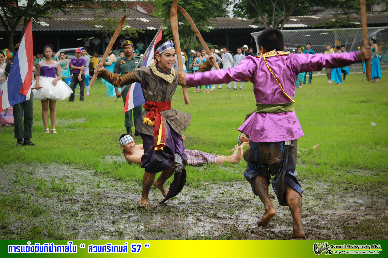 โดยมีนายวินัย กรานมูล ผู้อำนวยการโรงเรียนสวนศรีวิทยา เป็นผู้กล่าวรายงาน การจัดกิจกรรมกีฬาภายในของโรงเรียนสวนศรีวิทยา “สวนศรีเกมส์ 57” กำหนดจัดระหว่างวันที่ 22-25 กรกฎาคม 2557 มีนักเรียนเข้าร่วมกิจกรรม จำนวน 2,600 คน แบ่งออกเป็น 4 คณะสี ได้แก่ คณะสีม่วง จำนวน 659 คน, คณะสีแดง จำนวน 658 คน, คณะสีฟ้า จำนวน 634 คน และ คณะสีชมพู จำนวน 649 คน จัดให้มีการแข่งขันกีฬา 7 ประเภท คือ ฟุตบอล,บาสเก็ตบอล, วอลเลย์บอล, เปตอง, เซปัคตะกร้อ, เทเบิลเทนนิส และกรีฑา