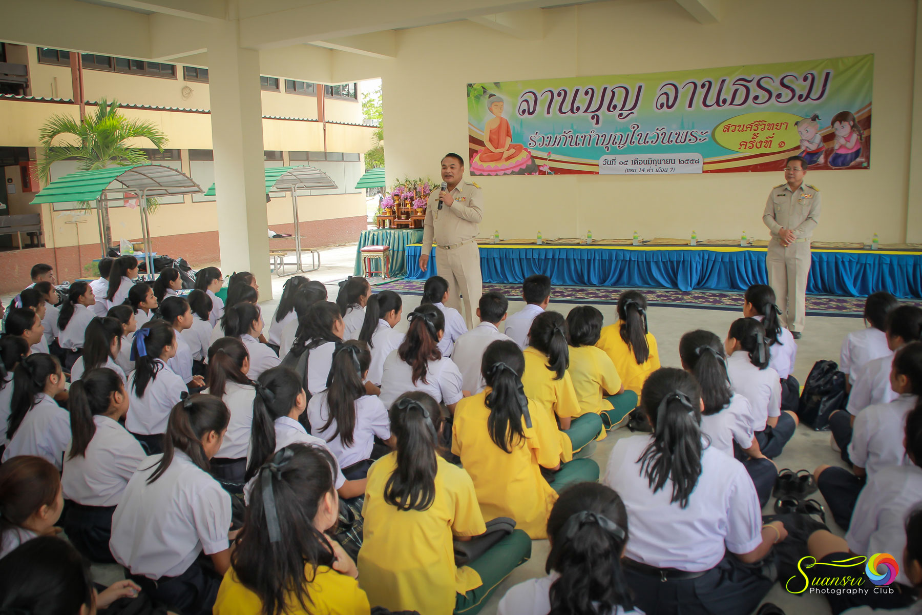 เมื่อวันที่ 15 มิ.ย. 58 ที่ผ่านมา กลุ่มสาระสังคมศึกษา ศานาและวัฒนธรรม โรงเรียนสวนศรีวิทยาได้จัดกิจกรรมลานบุญ ลานธรรม ครั้งที่ 1 ขึ้น เพื่อให้นักเรียน คณะครูและบุคลากรได้มีทำบุญในวันพระใหญ่ตรงกับวันแรม 14 ค่ำ เดือน 7 ณ ลานกิจกรรม อาคารมะเดื่อชุมพร โดยมี ดร.สุรินทร์ เนียมสุวรรณ์ ผู้อำนวยการโรงเรียนสวนศรีวิทยา เป็นประธานในพิธี