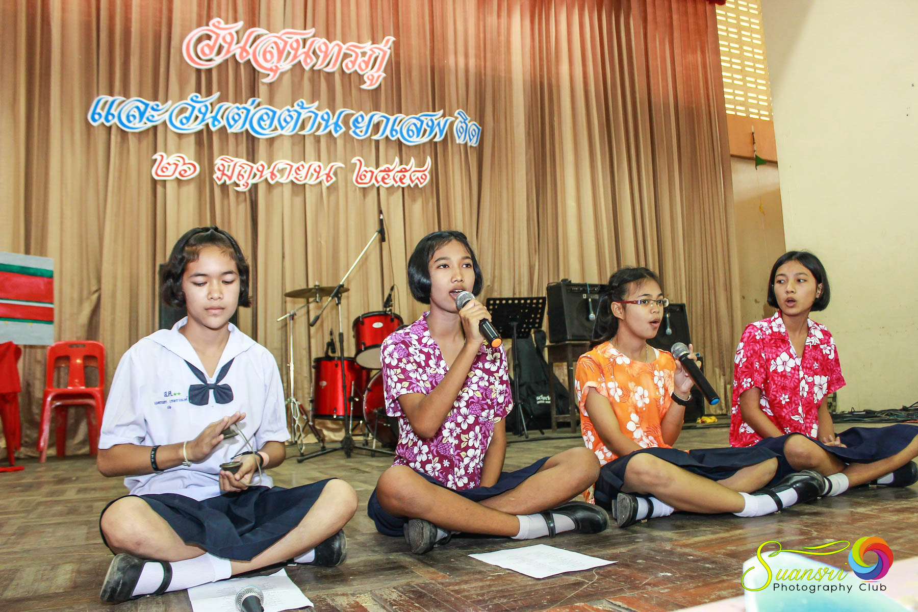 26 มิถุนายน 2558 กลุ่มสาระการเรียนรู้ภาษาไทยร่วมกับกลุ่มงานกิจการนักเรียนได้ร่วมงานกิจการนักเรียนโรงเรียนสวนศรีวิทยา ได้จัดกิจกรรมวันสุนทรภู่และวันต่อต้านยาเสพติดโลกขึ้น โดยมีวัตถุประสงค์เพื่อให้นักเรียนได้มีส่วนร่วมในการจัดกิจกรรมขึ้น เพื่อนำประวัติ และผลงานของท่านนำเสนอให้แพร่หลาย ให้นักเรียน และบุคคลทั่วไปได้มีโอกาสยกย่อง เทิดทูน และเกิดความซาบซึ้งในผลงาน ตลอดจนเพื่อเป็นการเผยแพร่การจัดงาน และเนื่องด้วยวันที่ 26 มิถนายนของทุกปีเป็นวันต่อต้านยาเสพติดโลก เพื่อให้นักเรียน นักศึกษาได้ตระหนักถึงความร้ายแรงของปัญหายาเสพติด ซึ่งประเทศไทยได้ยึดถือปฏิบัติและยืนยันเจตนารมณ์อย่างแน่วแน่ที่จะร่วมกับประชาคมโลกในการรณรงค์ต่อต้านยาเสพติด โดยมี ดร.สุรินทร์ เนียมสุวรรณ์ ผุ้อำนวยการโรงเรียนสวนศรีวิทยาเป็นประธานในพิธี