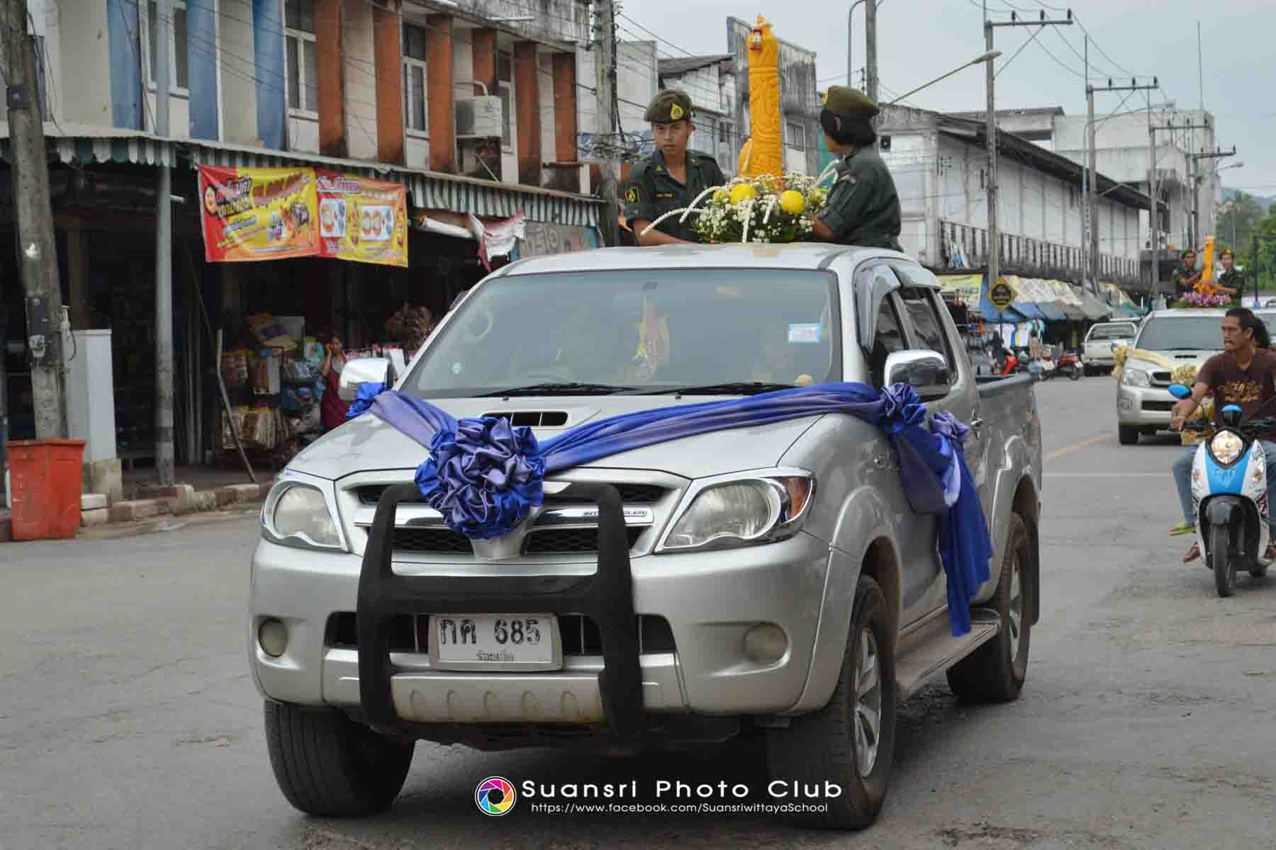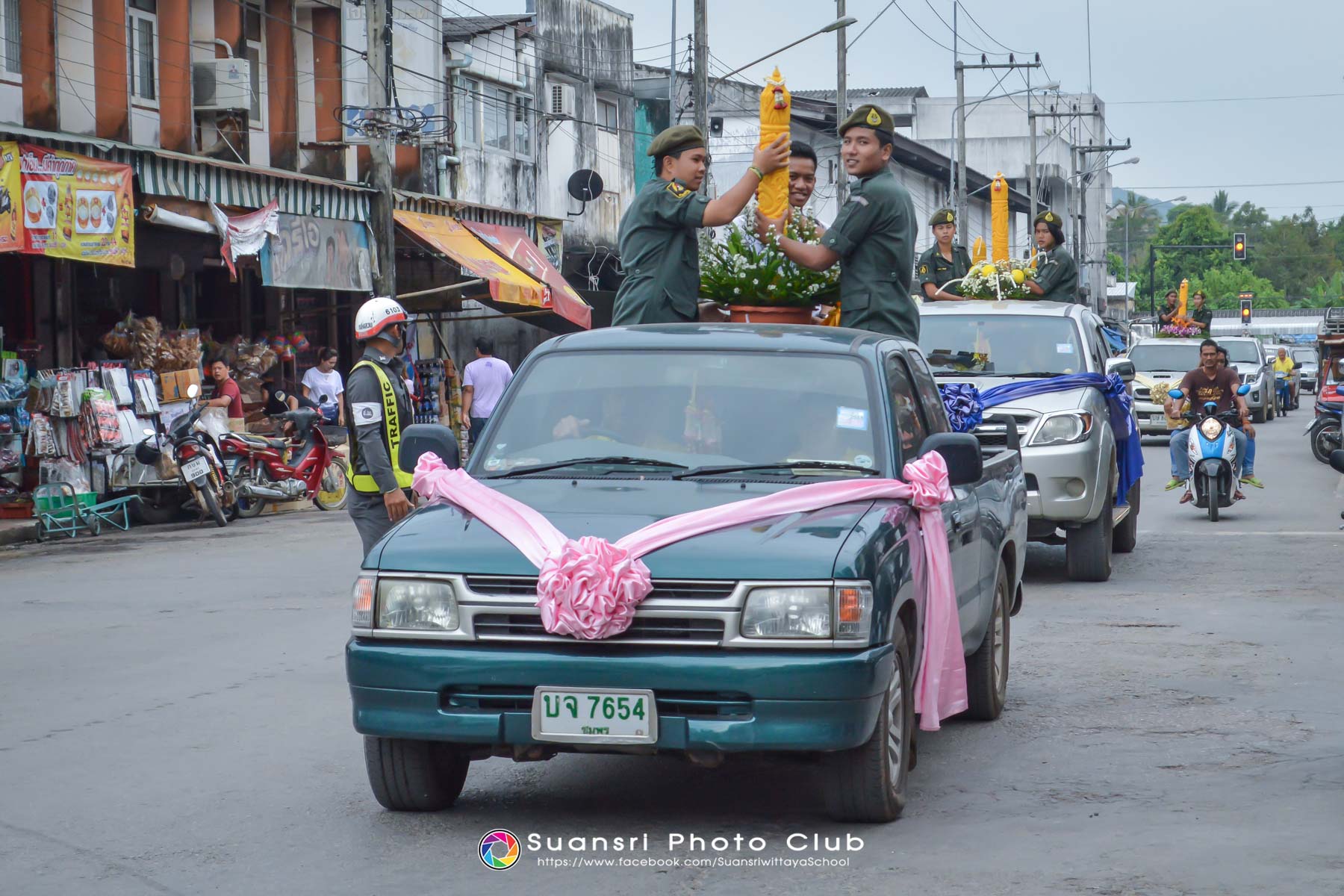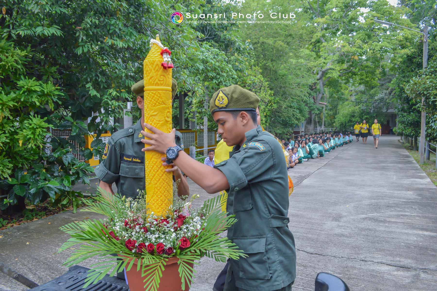 28 กรกฎาคม 2558 โรงเรียนสวนศรีวิทยาได้จัดให้มีการแห่เทียนพรรษา วันเข้าพรรษาเป็นวันที่สำเด็จพระสัมมาสัมพุทธเจ้า ทรงบัญญัติ ให้พระภิกษุสงฆ์จำพรรษา เป็นเวลา 3 เดือนในฤดูฝน ระหว่างแรม 1 ค่ำ เดือน 8 ถึงวันขึ้น 15 ค่ำ เดือน 11 เพื่อไม่ให้พระสงฆ์ ไปเหยียบย่ำข้าวกล้าของชาวบ้านให้ได้รับความเสียหาย ในวันเข้าพรรษามีประเพณีที่สำคัญ 2 ประเพณี ได้แก่ ประเพณีแห่เทียนพรรษาและประเพณีการถวายผ้าอาบน้ำฝน ประเพณีแห่เทียนเข้าพรรษานั้น เนื่องจากสมัยก่อนพระภิกษุสงฆ์จุดให้แสงสว่างในการปฏิบัติกิจวัตรต่าง ๆ เป็นพุทธบูชาตลอดเวลา 3 เดือน แต่เดิมการนำเทียนไปถวายชาวบ้านมักจัดขบวนแห่กันอย่างเอิกเกริกสนุกสานและปฏิบัติสืบทอนกันมาจนกลายเป็นประเพณี
