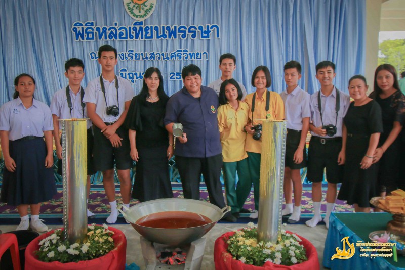 29 มิถุนายน 2560 กลุ่มสาระการเรียนรู้สังคมศึกษา ศาสนาและวัฒนธรรม โรงเรียนสวนศรีวิทยาได้จัดให้มีการหล่อเทียนพรรษา การหล่อเทียนพรรษาเป็นประเพณีที่เกี่ยวกับพระพุทธศาสนาที่มีมาแต่ครั้งโบราณกาลในสมัยกรุงรัตนโกสินทร์ พิธีหล่อเทียน จัดเป็นพระราชกุศล และเป็นงานบุญทั่วไปของชาวบ้านอีกด้วย โดยกำหนดจัดงานราชพิธีหล่อเทียนขึ้นในเดือน ๘ ของทุกปี ก่อน เข้าพรรษาสมัยนั้นการหล่อเทียนใช้หล่อด้วยขี้ผึ้งทั้งสิ้น ในปีหนึ่ง ๆ จะใช้ขี้ผึ้งเป็นจำนวนมากทั้งนี้เนื่องจากบรรดาวัดต่าง ๆ ที่เป็น วัดหลวงทุกวัด จะได้รับพระราชทานเทียนพรราวัดละ ๑ เล่ม หรือมากกว่านั้นทุก ๆ วัด จำนวนเทียนที่หล่อจึงมีมากขึ้น อานิสงส์ของการหล่อเทียนหรือถวายเทียนพรรษาแก่พระภิกษุ ถือกันว่าจะทำให้เป็นผู้มีปัญญาดีเจริญก้าวหน้า เหมือนดังแสงเทียนที่สว่างในยามค่ำคืน ซึ่งพระภิกษุสมัยก่อนใช้เป็นแสงสว่างในการอ่านหนังสือธรรมะและประกอบกิจของสงฆ์ โดยมีดร.สุรินทร์ เนียมสุวรรณ์ ผู้อำนวยการโรงเรียนสวนศรีวิทยา เป็นประธานในพิธี ณ ลานกิจกรรมลานบุญ ลานธรรม อาคารมะเดื่อชุมพร โรงเรียนสวนศรีวิทยา อำเภอหลังสวน จังหวัดชุมพร