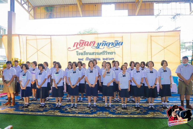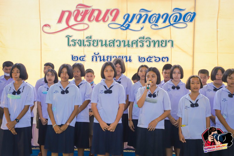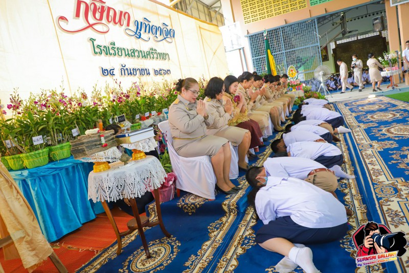 24 กันยายน 2563 โรงเรียนสวนศรีวิทยาจัดกิจกรรมไหว้ครู และมุทิตาจิตคุณครูเกษียณอายุราชการ “กษิณา มุทิตาจิต” เพื่อให้นักเรียนน้อมรำลึกถึงพระคุณครู และแสดงมุทิตาจิตแด่คุณครูอนงค์ รัตนพร ครูกลุ่มสาระการเรียนรู้ภาษาไทย ณ โรงฝึกพลศึกษา อาคารประดู่ โรงเรียนสวนศรีวิทยา โดยมีนางดวงฤทัย ทองแก้วเกิด ผู้อำนวยการโรงเรียนสวนศรีวิทยา เป็นประธานในพิธี