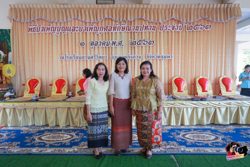 1 ตุลาคม 2563 นางดวงฤทัย ทองแก้วเกิด ผู้อำนวยการโรงเรียนสวนศรีวิทยา มอบหมายให้นางสาวสุกัญญา ขอรัตน์ รองผู้อำนวยการโรงเรียนสวนศรีวิทยา เป็นประธานในพิธีบำเพ็ญบุญและบำเพ็ญกุศลทักษิณานุปทาน ประจำปี 2563 เพื่ออุทิศให้กับนายเฉลิม บุญสวัสดิ์ นายกนกศักดิ์ ชูฝ่ายคลอง และ นายวิรัช โรจน์รัตน์ “วีรบุรุษแห่งลุ่มน้ำหลังสวน” และบำเพ็ญกุศลให้กับผู้มีพระคุณแก่โรงเรียน โดยมีคณะครู ผู้ปกครองนักเรียน ผู้ฝึกสอน และทีมงานคนพากย์เรือหลังสวน เข้าร่วมพิธี ณ ลานกิจกรรมลานบุญลานธรรม อาคารมะเดื่อชุมพร โรงเรียนสวนศรีวิทยา อำเภอหลังสวน จังหวัดชุมพร