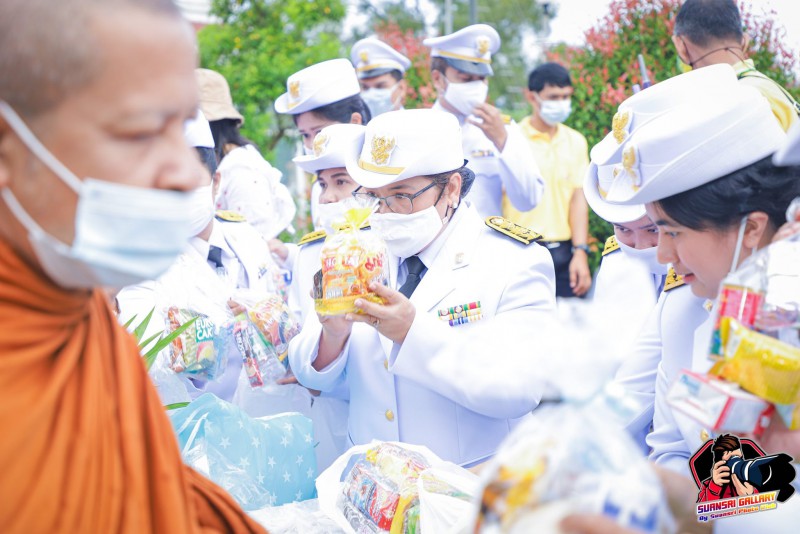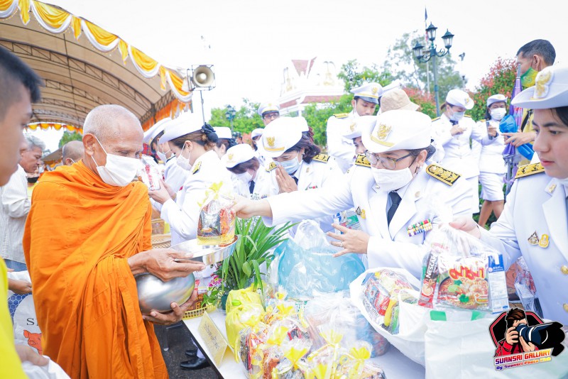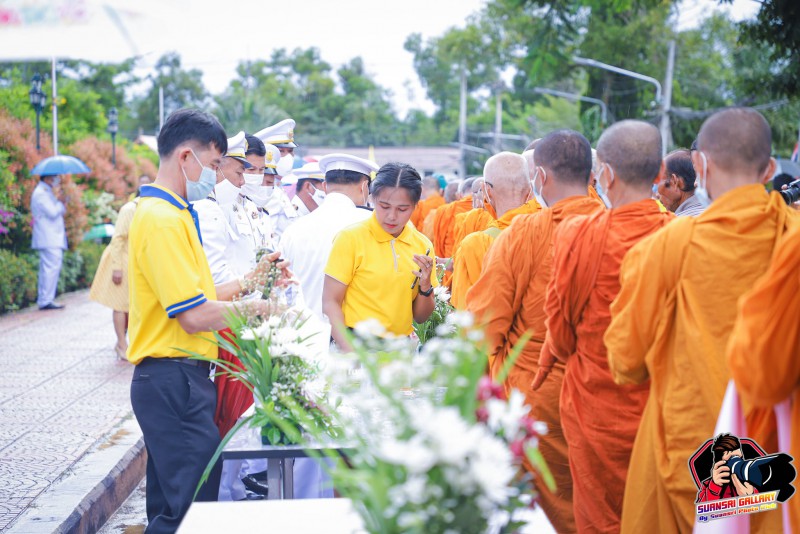 พิธีทำบุญตักบาตรถวายพระราชกุศล และพิธีวางพวงมาลาและถวายบังคม ณ บริเวณที่ว่าการอำเภอหลังสวน อำเภอหลังสวน จังหวัดชุมพร