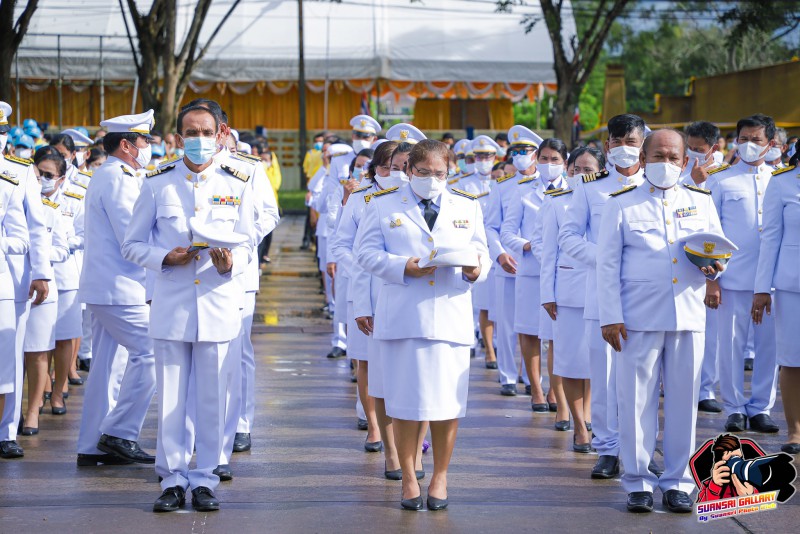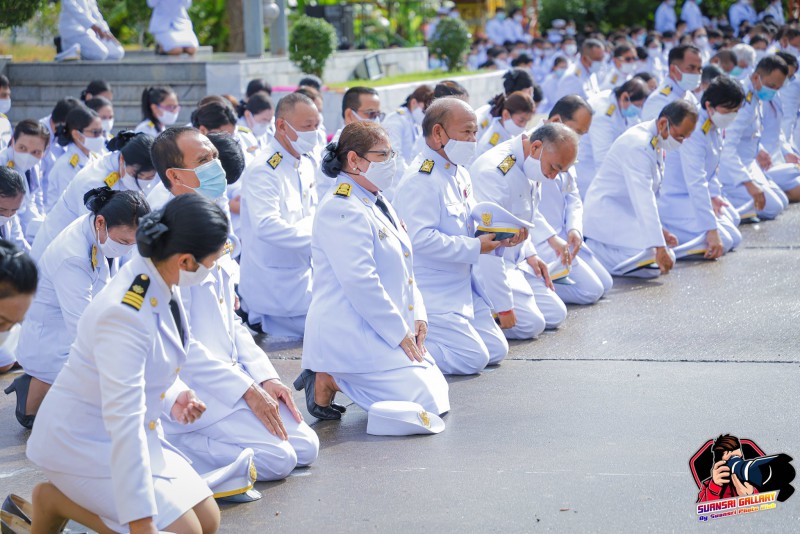 พิธีทำบุญตักบาตรถวายพระราชกุศล และพิธีวางพวงมาลาและถวายบังคม ณ บริเวณที่ว่าการอำเภอหลังสวน อำเภอหลังสวน จังหวัดชุมพร