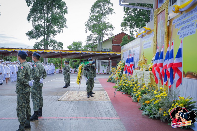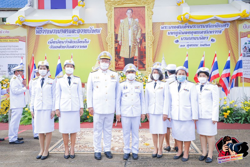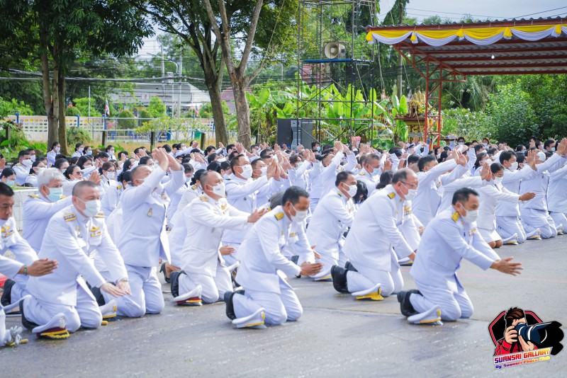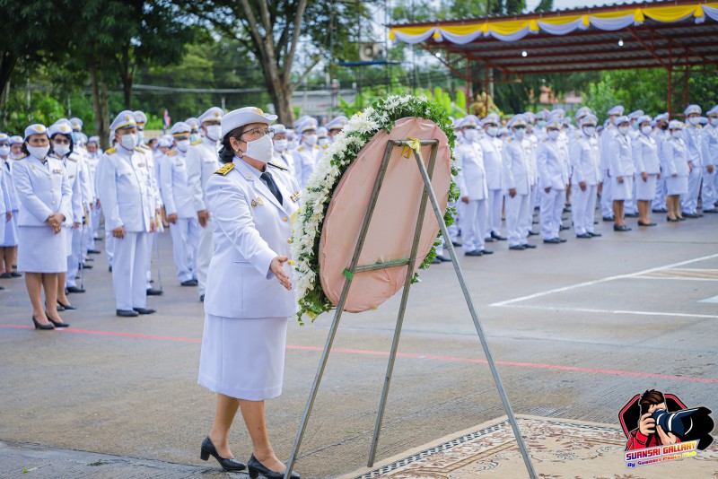พิธีทำบุญตักบาตรถวายพระราชกุศล และพิธีวางพวงมาลาและถวายบังคม ณ บริเวณที่ว่าการอำเภอหลังสวน อำเภอหลังสวน จังหวัดชุมพร