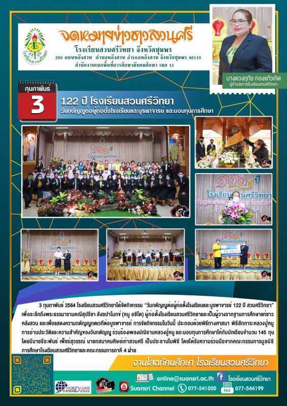 “วันกตัญญูต่อผู้ก่อตั้งโรงเรียนและบูรพาจารย์ 122 ปี สวนศรีวิทยา”