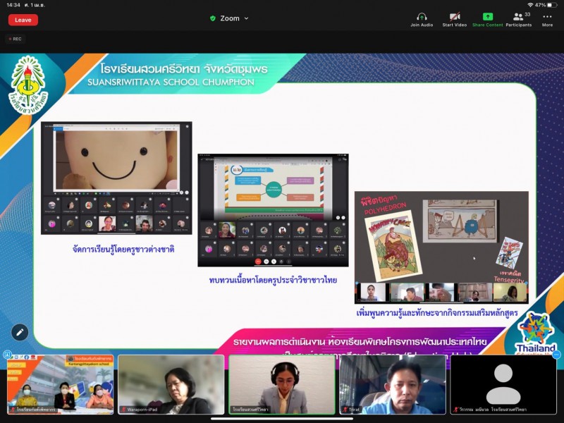 1 เมษายน 2565 นางสาวสุกัญญา ขอรัตน์ รองผู้อำนวยการโรงเรียนสวนศรีวิทยา รักษาการในตำแหน่งผู้อำนวยการโรงเรียนสวนศรีวิทยา มอบหมายให้ นางสาววีรวรรณ มณีนวล หัวหน้างานวิชาการ และนางสาวกนกวรรณ กันชนะ หัวหน้าโครงการห้องเรียนพิเศษ Education Hub เข้าร่วมประชุมรายงานความก้าวหน้าและผลการดำเนินกิจกรรมในปีงบประมาณ 2564 ของโรงเรียนในโครงการพัฒนาประเทศไทยเป็นศูนย์กลางการศึกษาในภูมิภาค (Education Hub) โปรแกรมวิทยาศาสตร์-คณิตศาสตร์ สองภาษา (Science-Mathematics Bilingual Program) จำนวน 18 โรงเรียน ด้วยระบบทางไกล Video Conference ผ่าน Application Zoom จัดกิจกรรมโดยสำนักงานคณะกรรมการการศึกษาขั้นพื้นฐาน
