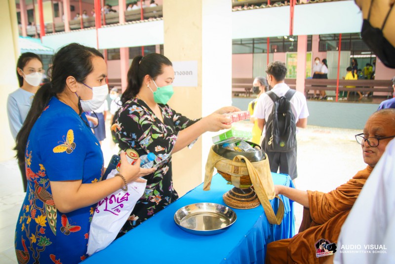 16 ธันวาคม 2565 นายภูมิสถิตย์ ดวงฤทธิ์ ผู้อำนวยการโรงเรียนสวนศรีวิทยา มอบหมายให้นางจิตติมา วรชาติ รองผู้อำนวยการ คณะครู นักเรียนและบุคลากรทางการศึกษาโรงเรียนสวนศรีวิทยา ร่วมทำบุญตักบาตรอาหารแห้งแด่คณะสงฆ์จากสำนักสงฆ์บ้านคลองโสด จ.สุราษฎร์ธานี โดยมีพระภิกษุสงฆ์ จำนวน 5 รูป เนื่องจากทางสำนักสงฆ์ฯ จัดปฏิบัติธรรมอยู่ปริวาสกรรมบวชนาคหมู่ถวายเป็นพุทธบูชา ณ บริเวณลานบุญ ลานธรรม อาคารมะเดื่อชุมพร โรงเรียนสวนศรีวิทยา อำเภอหลังสวน จังหวัดชุมพร