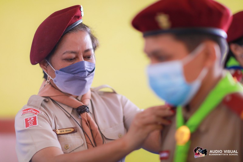 พิธีเข้าประจำกองลูกเสือ - เนตรนารีสามัญรุ่นใหญ่ ของนักเรียนระดับชั้นมัธยมศึกษาปีที่ 1 และ 2 ประจำปีการศึกษา 2565