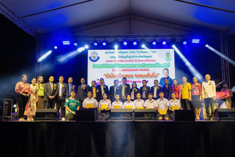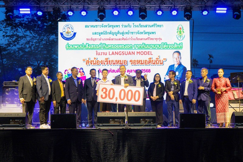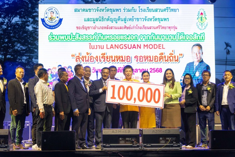 9 ตุลาคม 2568 ดร.กษมาพร ชวาลิต ผู้อำนวยการโรงเรียนสวนศรีวิทยา พร้อมด้วย นางจิตติมา วรชาติ นางอิสริญ บุญหนัก นางจิตติมา มุขพริ้ม และนายชวินทร์วิชญ์ สุทธิสิน รองผู้อำนวยการ คณะครูและบุคลากรทางการศึกษาโรงเรียนสวนศรีวิทยา ร่วมงาน LANGSUAN MODEL “ส่งน้องเรียนหมอ รอหมอคืนถิ่น” จัดโดยสมาคมชาวจังหวัดชุมพรร่วมกับโรงเรียนสวนศรีวิทยา และมูลนิธิกตัญญูคืนสู่เหย้าชาวจังหวัดชุมพร วัตถุประสงค์เพื่อสนับสนุนทุนการศึกษาแก่นักเรียนเรียนดีของชาวจังหวัดชุมพร ที่สอบติดคณะแพทยศาสตร์แต่ขาดแคลนทุนทรัพย์ และเป็นการพบปะสังสรรค์ของชาวอำเภอหลังสวนและศิษย์เก่าโรงเรียนสวนศรีวิทยาทุกรุ่น ซึ่งทางโรงเรียนสวนศรีวิทยาสนับสนุนวงดนตรีไทย ฝ่ายลงทะเบียน และซุ้มกาแฟสวนศรี โดยมีนายเธียรชัย ชูกิตติวิบูลย์ ผู้ว่าราชการจังหวัดชุมพร เป็นประธานในพิธีเปิด รศ.ดร.บุญยิน จินาจิ้น นายกสมาคมชาวจังหวัดชุมพร กล่าวรายงาน ณ บ้านต้นตระกูล ต.แหลมทราย อำเภอหลังสวน จังหวัดชุมพร