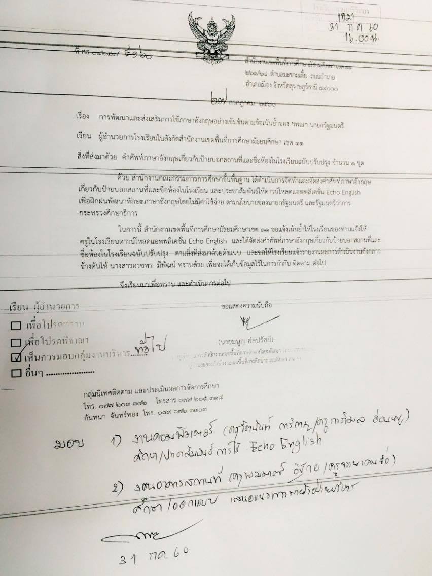 การพัฒนาและส่งเสริมการใช้ภาษาอังกฤษอย่างเข้มข้นตามข้อเน้นย้ำของ ฯพณฯ นายกรัฐมนตรี